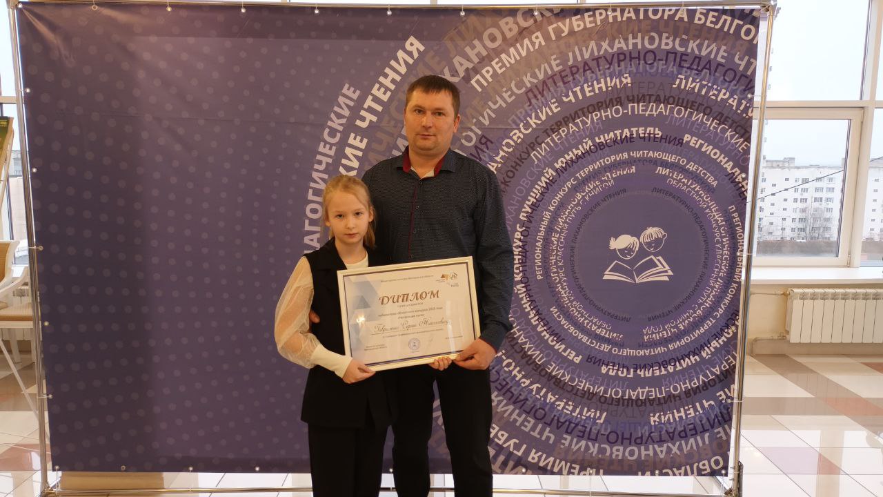 17 декабря в Белгороде в рамках проведения XXV литературно-педагогических Лихановских чтений состоялось награждение лауреатов региональных конкурсов Белгородчины: «Лучший юный читатель года» и «Читающий папа». Победителем от Грайворонского округа в конкурсе «Лучший юный читатель года» стала Алиханова Арина, ученица 8 класса МБОУ «СОШ с УИОП» г. Грайворона. Она очень любит читать и является активным участником библиотечных мероприятий Грайворонской детской библиотеки. Почетное звание «Читающего папы» получил Гавриленко Сергей Николаевич. Его дочь Александра, также является лучшим читателем нашей библиотеки. Поздравляем победителей с заслуженными наградами!